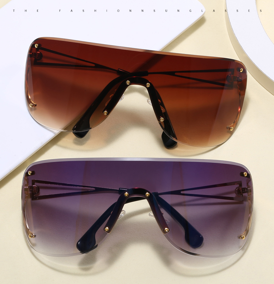- Tag: sunglasses , rimless , oversized , one piece lens , flattop