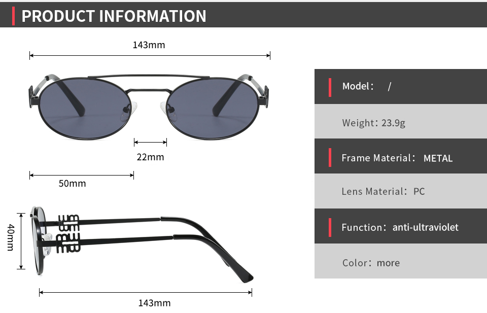 - Product Name: Retro Oval Luxury Flat Top Metal Frame Shades Sunglasses